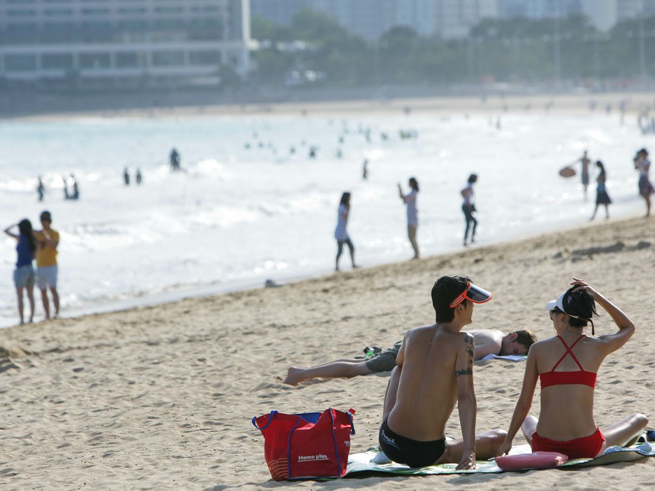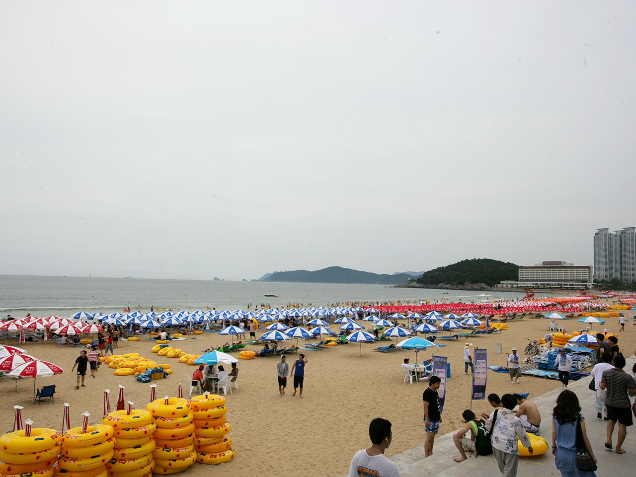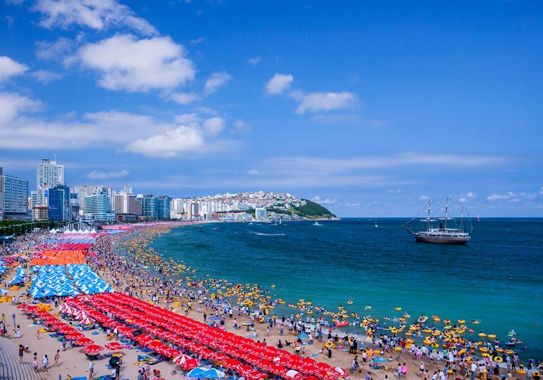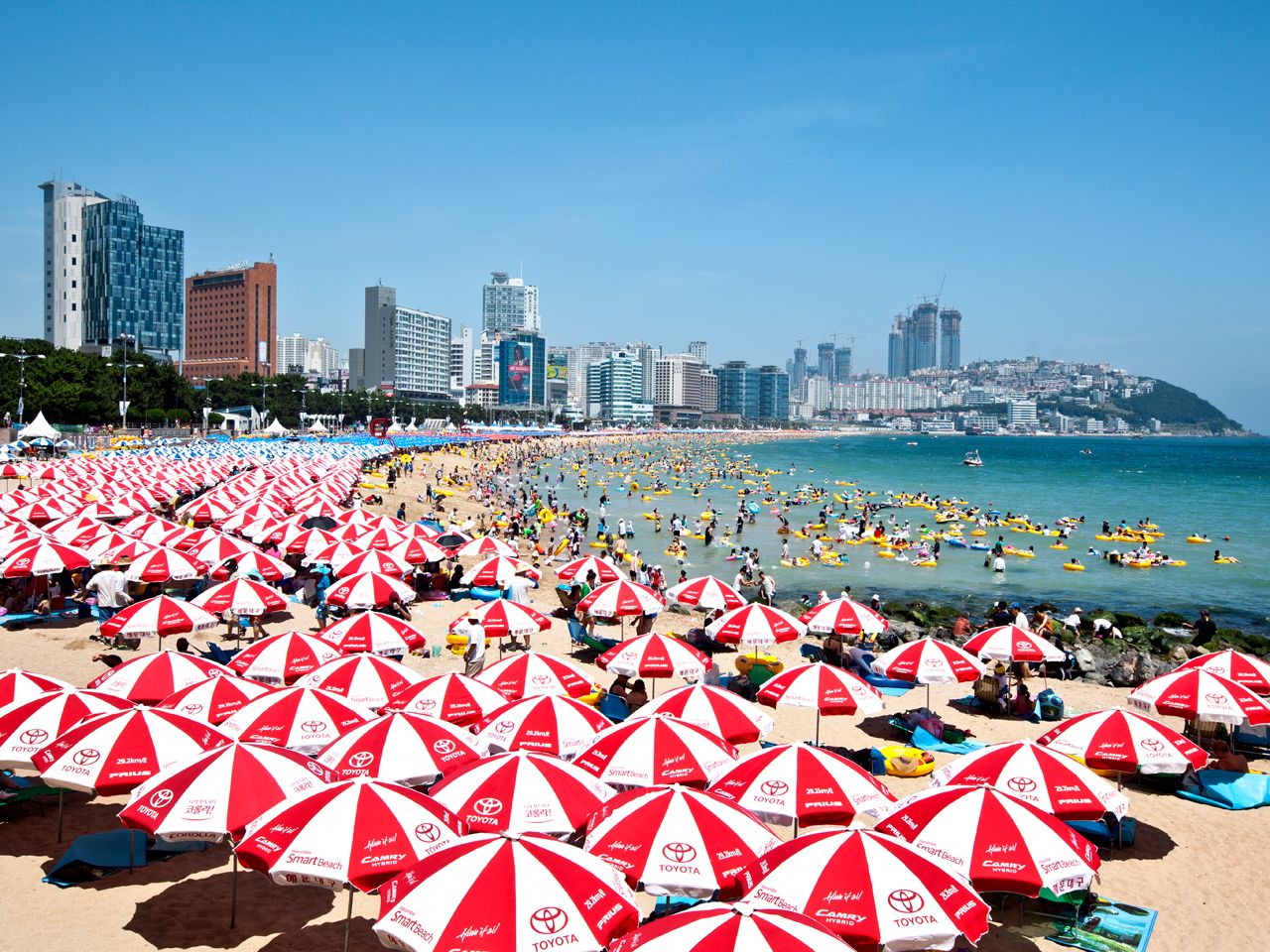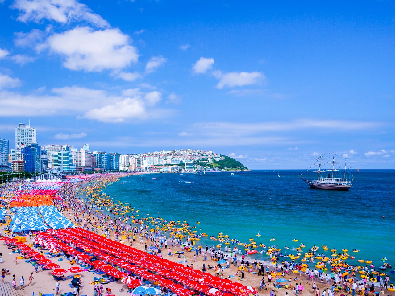 約2kmにわたって白砂のビーチが続く海雲台(ヘウンデ)は韓国を代表する人気リゾート地。