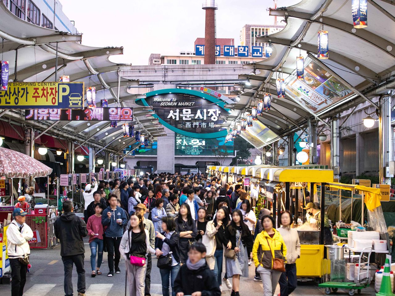龍頭岩(ヨンドゥアム)や古代神話が伝わる三姓穴(サムソンヒョル)の観光や、済州島で最大規模の在来市場、東門市場(トンムンシジャン)でのショッピングが人気。