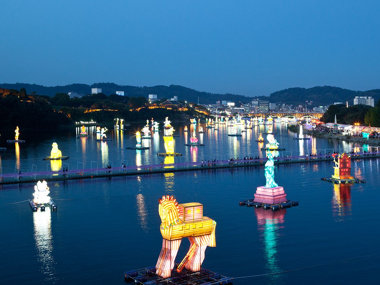 その際に亡くなった兵士や農民の魂を慰霊しようと流灯祭りが始まり、今では晋州を代表する秋のお祭りとして定着しました。また、ユッケビビンバや晋州冷麺など名物料理も多く、食事処には困りません。郷土料理を満喫しながら歴史観光を楽しみましょう。