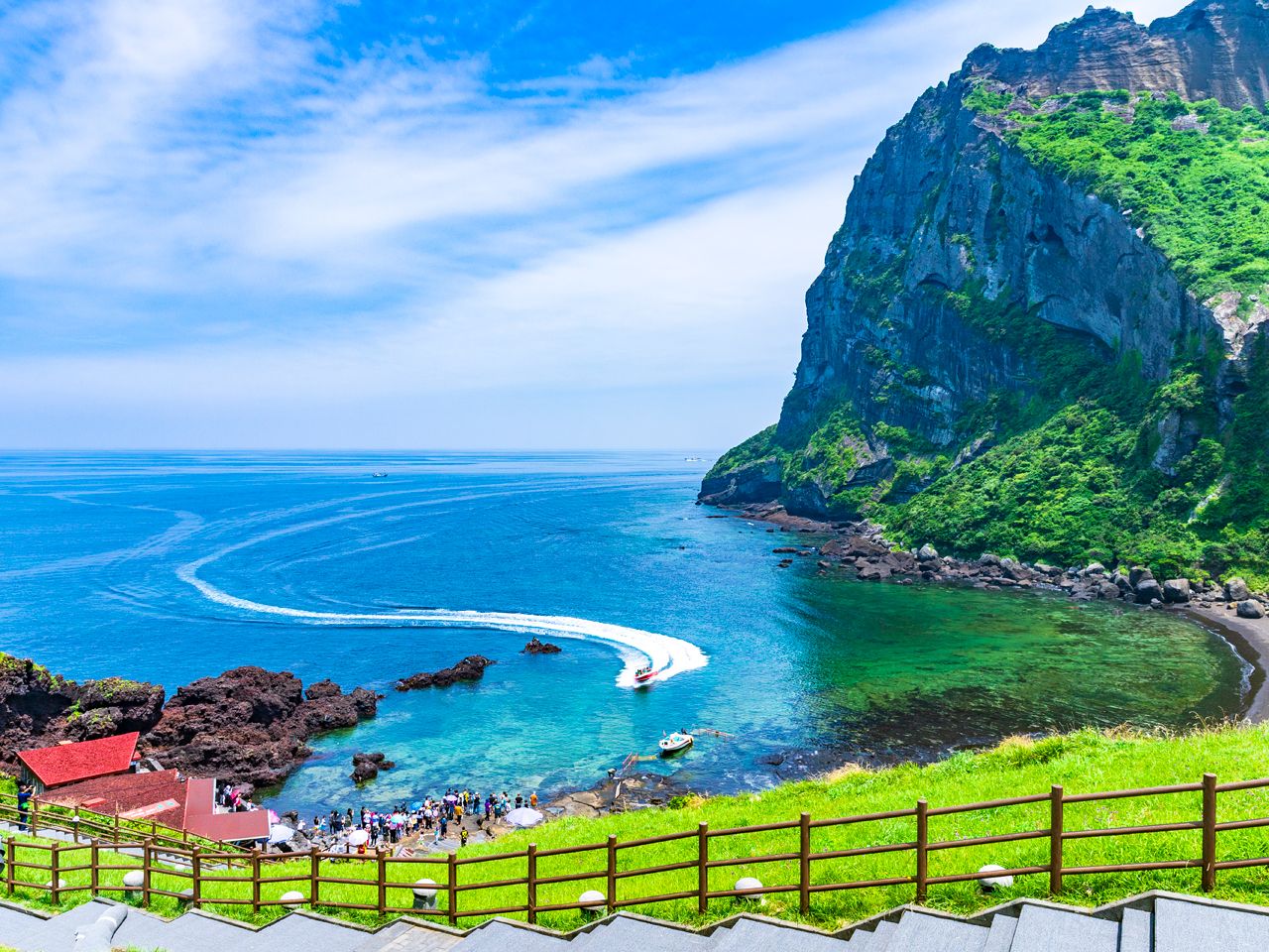 ユネスコ世界文化遺産に登録されている城山日出峰(ソンサンイルチュルボン)や万丈窟(マンジャングル)をはじめ、離島の牛島(ウド)観光も人気です。