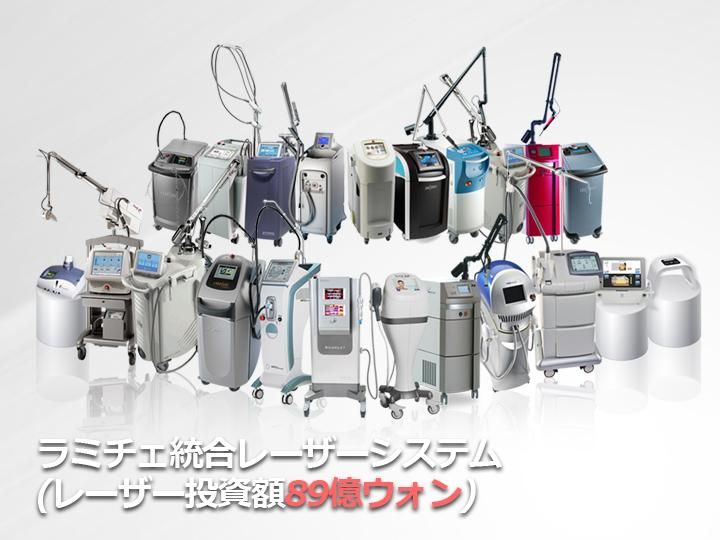 ソウル東南部の蚕室(チャムシル)エリアに位置する「ラミチェ皮膚科」は、2002年に開業した美容クリニック。肌を専門に約22年の臨床経験を持つチュ・ジョンホ代表院長をはじめ、約100名の医療スタッフが患者をサポートする大型医院です。診察前に行う肌チェックにより、患者の正確な肌状態を把握。レーザーを基盤にした施術が得意で、日本人に悩みの多いにニキビや毛穴、くすみなどの肌トラブルも、51種類を超える最新機器から症状に適した方法を提案し改善へと導きます。日本語担当者が常駐しているため言葉の心配もありません。