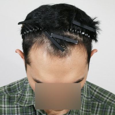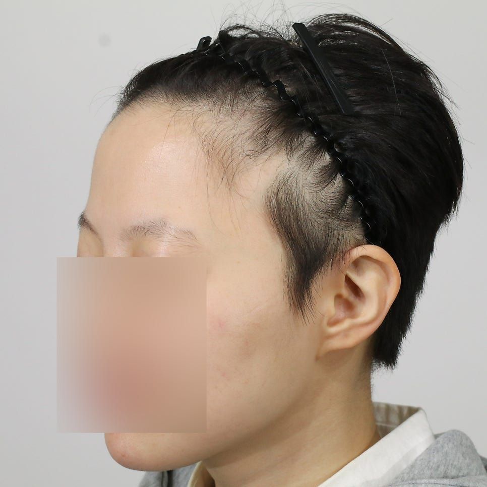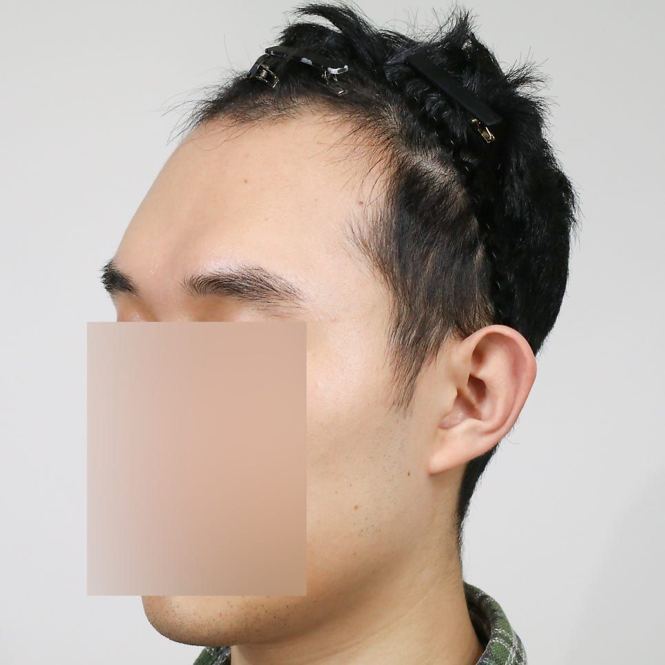 他院では「ヘアライン修正のみ」「その範囲なら切開のみ」と言われましたが、こちらでは気になっていた分け目周辺の“毛と毛の間”にも丁寧に植毛していただけました。