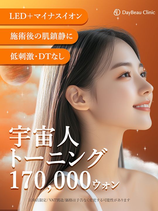 「デイビュー(DayBeau)クリニック 江南(カンナム)プレミアム店」は、ソウルの美容の中心地・江南エリアにあります。ボトックスをはじめ、インモード、ウルセラ、フィラーなど幅広いプチ美容施術を提供。日本語対応スタッフが常駐していて、予約からカウンセリング、施術、アフターケアまで、言葉の面でも安心してサポートを受けられます。クリニックは地下鉄9号線・新盆唐線の新論峴(シンノニョン)駅すぐ目の前。院内は韓国伝統デザインを取り入れたフォトジェニックな空間で、施術前後の時間も心地よく過ごせます。