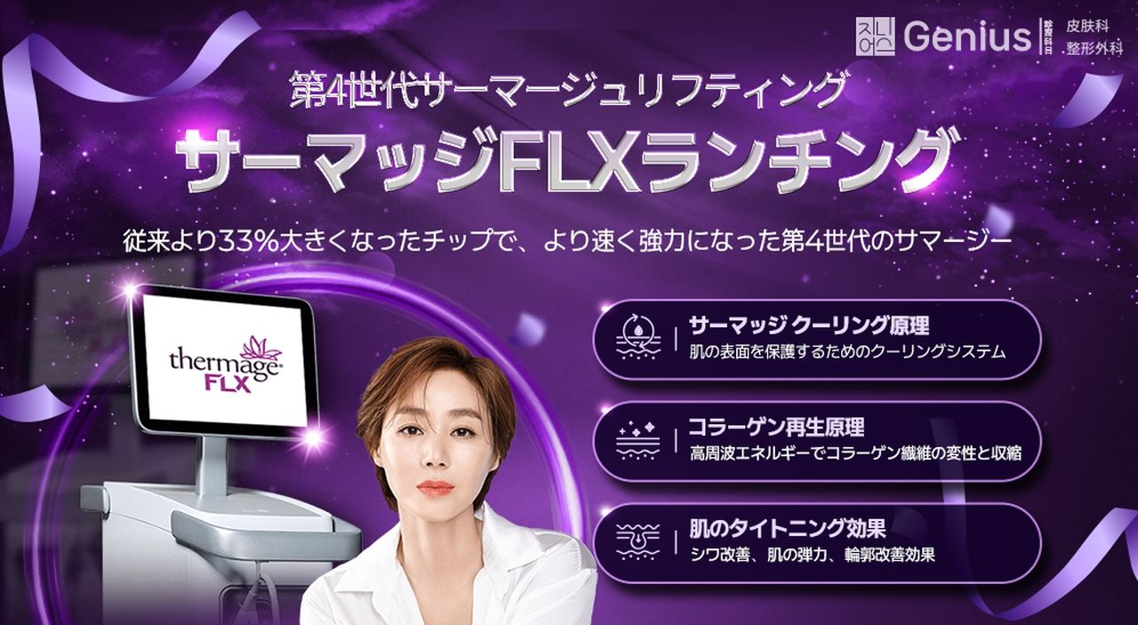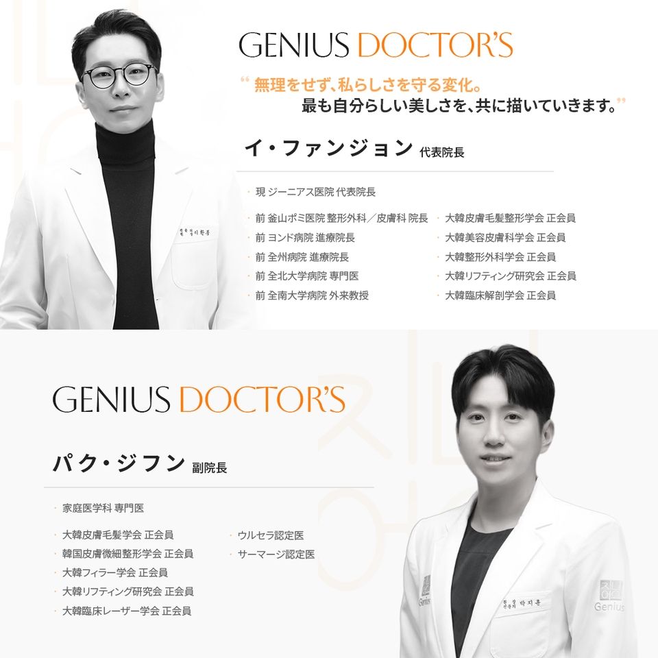 「GENIUS(ジーニアス)美容外科・皮膚科」は、2012年に言論誌「時事マガジン」の「韓国を代表する100大名医」に7人の院長が選出され、美に関心が高い韓国女性たちから信頼を集めている美容クリニックです。15分で終わる二重まぶたの整形手術など、短時間で気軽に試せるプチ整形や多彩なスキンケアが受けられるのが魅力。「西面(ソミョン)」店は、グルメ・ショップ・ホテルが集まる釜山(プサン)の繁華街の中心、地下鉄駅から徒歩圏内に位置。アクセス抜群なので、釜山旅行を楽しみながらきれいになりたい人におすすめです。
