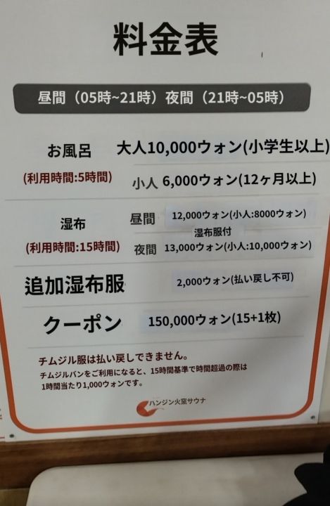 誠信女大入口駅から700mの所にある地元のチムジルバン (返信: 0)投稿者:s.g.c.takeさん | 24.03.21利用日:2024.03.17お気に入り追加土曜日夜は東大門付近のチムジルバンは混みそうなので、こちらに行ってみました、 誠信女大入口駅から700m坂の上のアパート郡にあります、入口は地下1階、13000wでした、男子浴場は広く一度に30人が洗える程、浴槽清掃時間は男子20〜21時、女子01〜05時です チムジルバンエリア入口にスクリーン乗馬2000wがあり、売店は9:00〜23:00です、 その他に30度の部屋、塩部屋50度、ブルガマ85度、アイスルーム、男性休憩室、女性休憩室、喫煙室などあります、夜11時過ぎると電気が暗くなります、