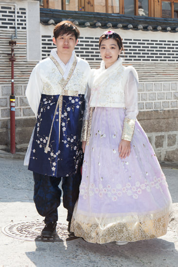 スンヒョンさん (26 • 学生) 女性らしい柔らかな笑顔が印象的なスンヒョンさん。お友達のソンヘンさんと対照的で華やかな、ネイビーとシルバー刺繍の色合いの 韓服を選びました。スンヒョンさんも衣装の決め手はカラーだそうで、以前パーソナルカラー診断を受けて以来自分に似合う色を積極的に取り入れているそう。髪飾りにパールをつけて、おしゃれへのこだわりが見えました。 |