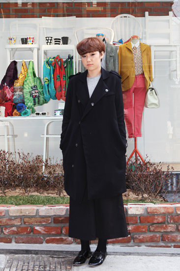 チェウンさん (21 • 学生) 鮮やかな青紫のコートが着たかったというチェウンさん。ファッション専攻というオシャレ感覚を生かして、つばのついたキュートな帽子も光ります。 |