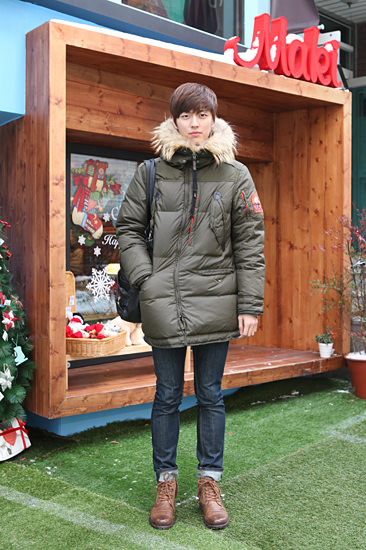 シヒョンさん (22 • 学生) 韓流アイドルを思わせる整った顔立ちが目を引くシヒョンさんは、大学で演劇映画科に在籍中。この日は買い物をしにカロスキルに来ました。服は韓国ビンテージカジュアルブランド「Thursday Island」で購入することが多いそう。 |