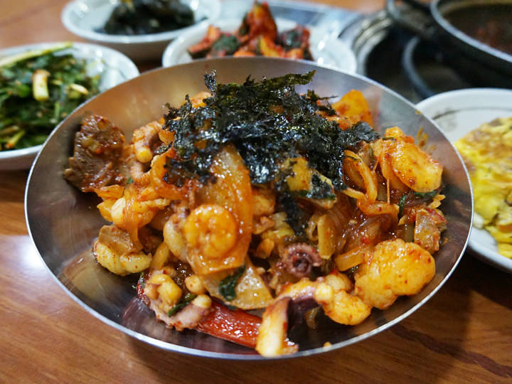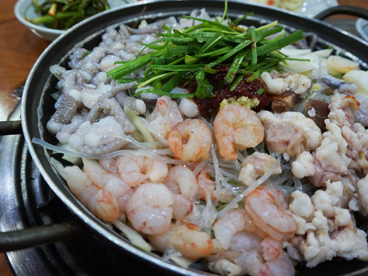 釜山式のホルモン鍋「ナッコプセ(テナガダコ・ホルモン・エビの辛炒め)」で有名なお店。釜山の観光エリア・南浦洞(ナンポドン)のホテル街にあるので、アクセスが良いと日本からの観光客の利用にも便利な立地です。料理は、炒めるのではなく水気の少ない鍋物のようなもので、暑さバテで食欲がなかったり、気分がすっきりしない日にも向いている料理です。鍋は出来上がったら、具材をご飯の上にかけて、即席ビビンバにして混ぜながら食べるのが韓国式。食事にもお酒のおつまみにもどちらでも利用できます。その他にも海鮮鍋などの海鮮メニューも豊富です。