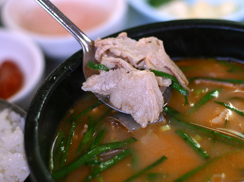 | 主なメニュー | 豚のスープご飯(テジクッパ)、豚の腸詰め(スンデ)、茹で豚(スユッ) |