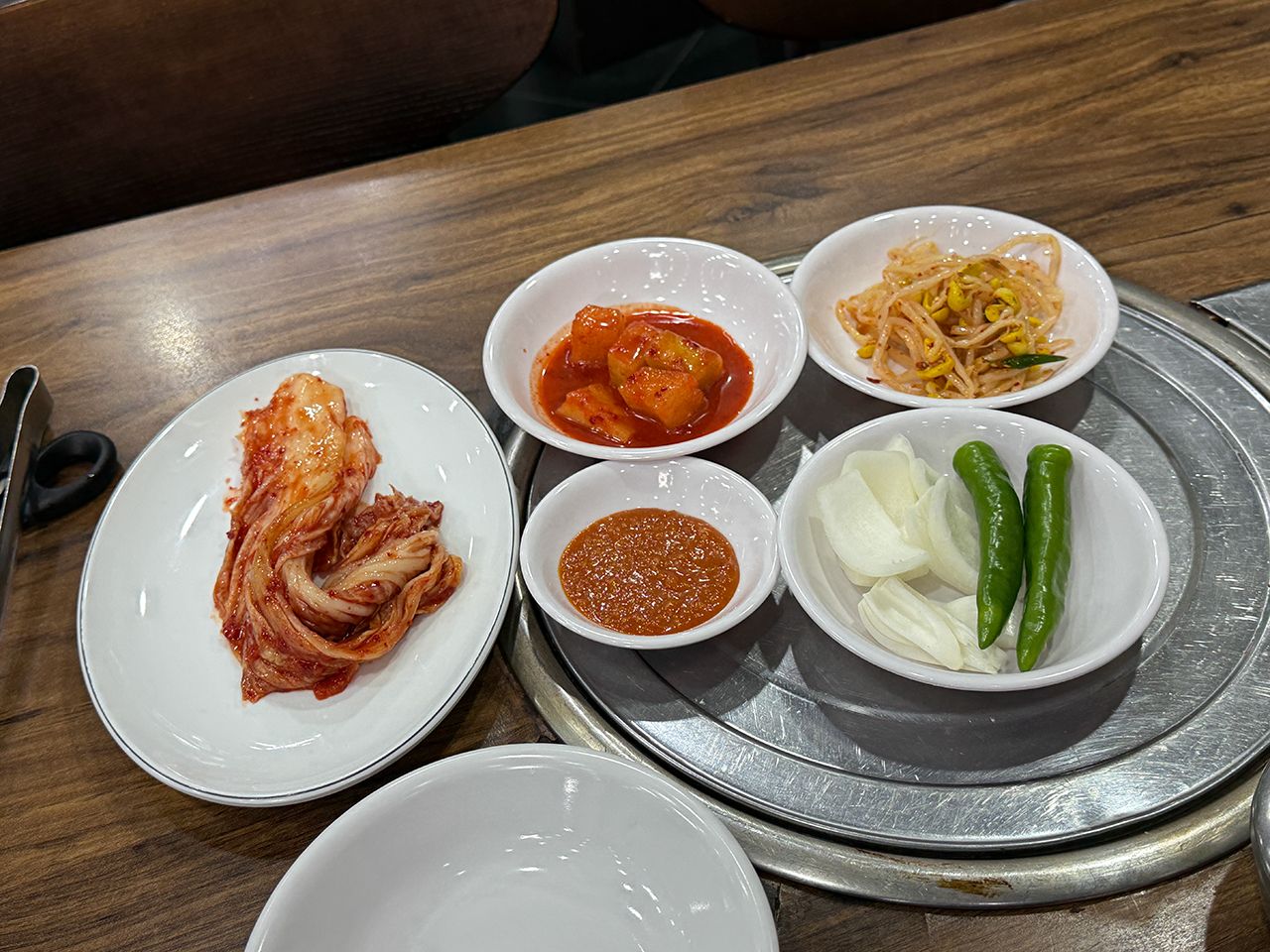・パンチャンはキムチ、青唐辛子と玉ねぎのスライス