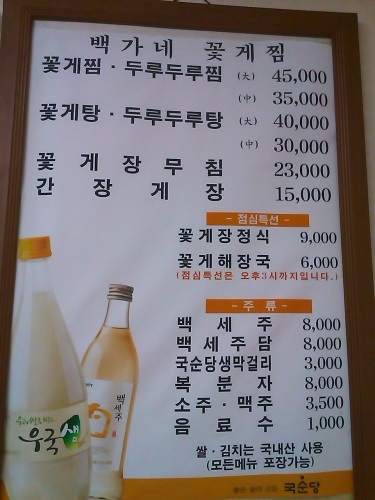 | 主なメニュー | コッケチム(カニ蒸し)、カンジャンケジャンなど |