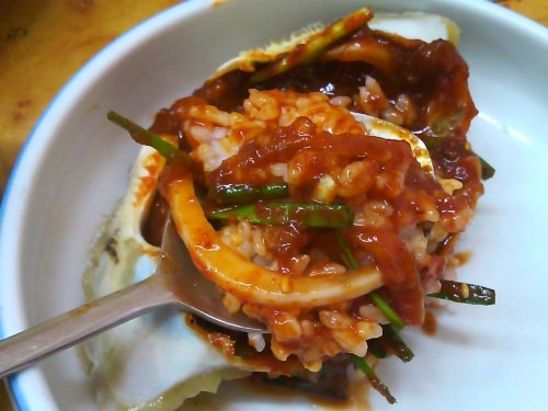先日済州島に来て、初めて「꽃게장」【コッケジャン】(ワタリガニ味噌)を食べに行きました