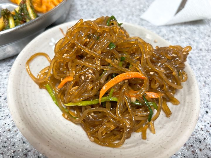 最近の韓国では珍しく5種の基本おかずにたっぷりのチャプチェ、汁物(この日はワカメスープでした)までついて来ます。