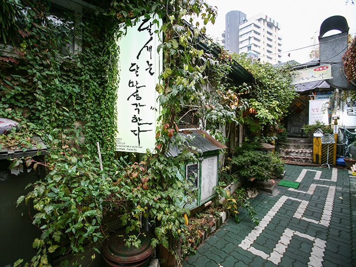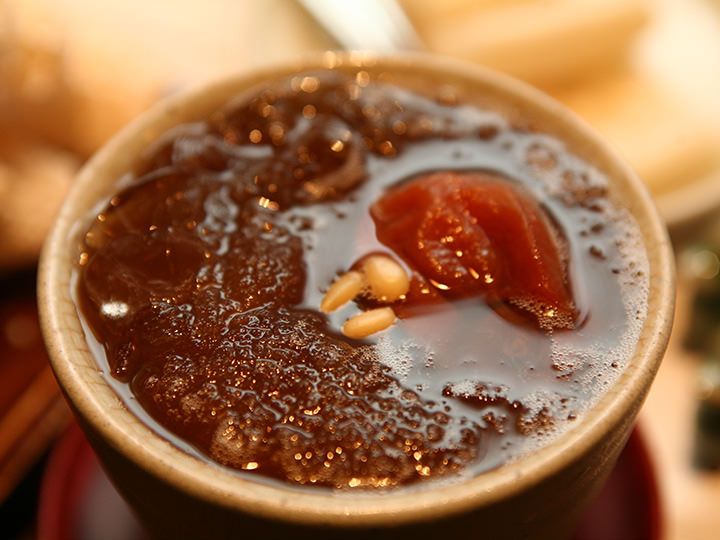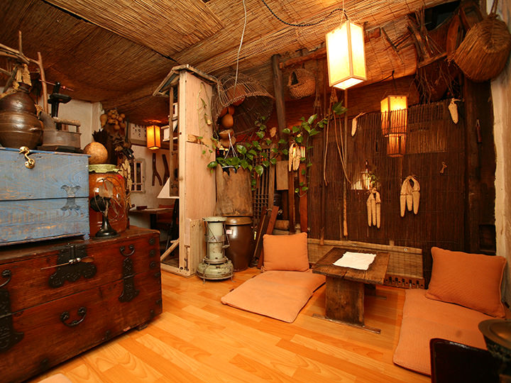「月鳥は月だけを想う」は、外国人が最も多く訪れる観光地・仁寺洞(インサドン)の路地裏にある伝統茶専門店です。韓国の伝統建築様式・韓屋(ハノッ)作りの店内は、薄暗い照明の下、素朴で温かい韓国の骨董品が至るところに散りばめられ、数十年前にタイムスリップしたような、懐かしい気持ちにさせてくれます。こんな韓国の伝統が感じられる店内にふさわしいメニューは、韓国の伝統茶です。柚子茶(ユジャチャ)をはじめ、定番の伝統茶がならび、デザートには薬菓(ヤックァ)がおすすめです。