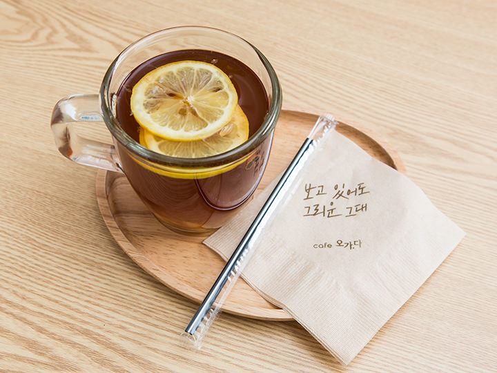 とりあえず「オリジナル:麗(うんじ茸桑葉茶。4800ウォン)」をアイスで注文。
