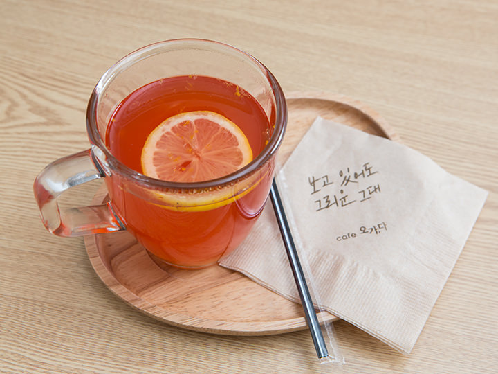 お土産ショップや飲食店が連なる「仁寺洞(インサドン)」のメインストリート北側入口に位置したカフェ「五嘉茶(オガタ) 仁寺洞店」。伝統茶をウリにした韓国初のチェーンカフェとして知られています。人気なのは、オリジナルでブレンドした5種類の伝統茶。中でも、梨とトラジ(キキョウの根)などを合わせたお茶「梨トラジ」が甘くて飲みやすいと評判です。ほかにも、注文を受けてから作るハルラボン(デコポン)のジュースや、韓国でメジャーなお餅「インジョルミ(きな粉餅)」をアレンジしたトーストなど、韓国ならではのメニューが充実!「仁寺洞店」は地下鉄3号線の安国(アングッ)駅から近く、場所がわかりやすいと、多くの外国人観光客に利用されています。