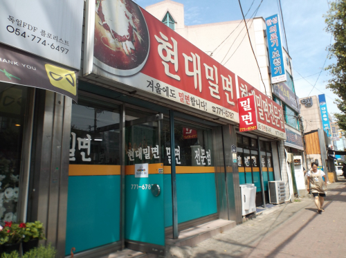 慶州市の中央市場前にある、ミルミョン屋ですね。