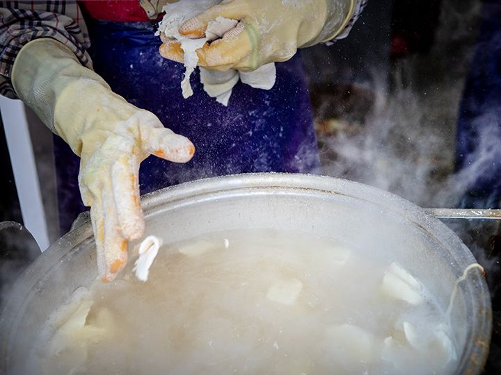 ソウル都心部の「鐘路3街(チョンノサムガ)駅」は地下鉄が3路線乗り入れ、観光ホテル・格安ホテルが集まる、観光客にも人気のエリアです。駅近くの細い路地の長屋には昔ながらの雰囲気の飲食店が連なり、この「ハルモニカルグクス」もそのうちの1店舗。開業は1988年と、店内の雰囲気は今もなお昔のままです。カルグクスとは小麦粉を使った、うどんのような麺料理で辛くなく、日本の旅行客にも人気の韓国料理。そのカルグクスと、スジェビ(韓国のすいとん)とハーフ&ハーフにした「カル・ジェビ」が一番人気。麺は機械で製麺せず、すべて手作りなので、太さがマチマチなのが何よりもその証拠です。1人前メニューなので、韓国一人旅でも気軽に入れるのもポイントです。