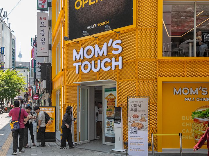 「マムズタッチ」は、韓国全国各地にチェーン展開をしている人気のファーストフード店です。チキンメニューが豊富で、チキンバーガーはもちろん、韓国チキンも食べられるので、チキン専門店に行かずとも気軽にチキンが食べられます。全メニュー、注文を受けてから作り始めるので出来たてのアツアツが味わえ、特にチキンは肉厚でジューシー!かつ油濃くなくて食べやすい味わいです。「明洞(ミョンドン)店」は、2024年6月に移転・再オープンし、地下鉄2号線「乙支路入口(ウルチロイック)駅」方面にある黄色い大きなビルが目印。1階が注文&受取カウンターで、2階・3階にイートインスペースがあり、テイクアウトもできます。