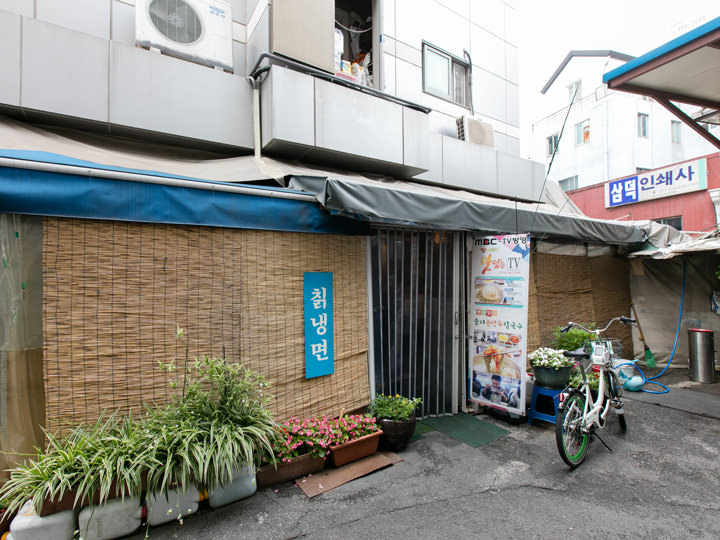 明洞(ミョンドン)のお隣、地下鉄2号線と3号線が乗り入れる「乙支路3街(ウルチロサムガ)駅」近くの路地で、40年以上にわたって愛され続けているマンドゥ(餃子)とカルグクス(手打ち麺)の老舗店です。