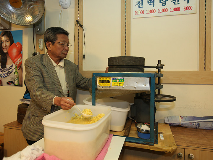 「ヨルチャチッ」は、1950年創業の鐘路(チョンノ)の老舗チヂミ店です。 地下鉄1号線の鐘閣(チョンガッ)駅すぐ、こぢんまりとした店で、入口横にチヂミを焼く鉄板があります。かつてうまいもん通り「ピマッコル」の看板店でしたが、再開発に伴い2010年に移転しました。 昔からの看板メニューは、つまみにぴったりの緑豆チヂミ(ピンデトッ)。皮をはぎ臼で直接挽いた緑豆に、キャベツ、豚肉を混ぜ、豚の脂で焼きつけたものです。統営(トンヨン)産の新鮮な牡蠣を直送し使用している牡蠣チヂミ(クルジョン)も人気。
