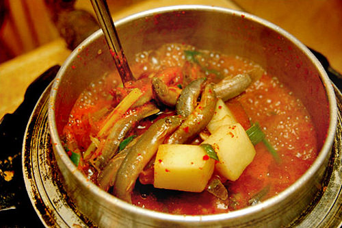 日本でもどじょう鍋を食べますが、韓国のは辛めでとっても美味しいです。