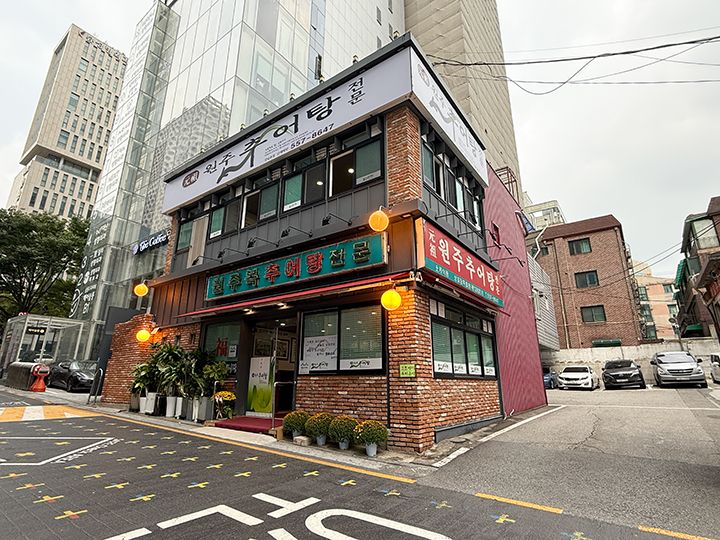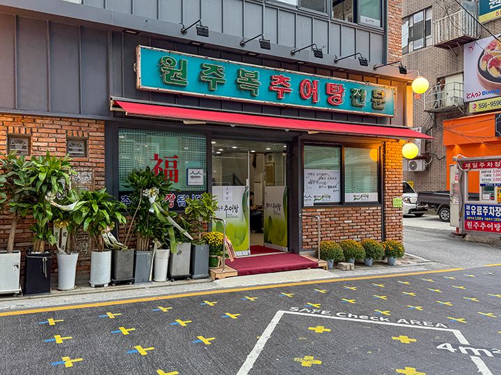 韓国で精力料理として親しまれているチュオタン(ドジョウ鍋)の専門店「元祖原州チュオタン」は、江南(カンナム)で30年続くお店です。朝から晩まで大賑わいで、一日の来客数が1,000人を超える日もあるとのこと。よく水洗いしたドジョウを骨ごとすり身にしてジャガイモ、ニラなどの野菜と煮込んだ、カラソチュオタンが一番人気。少し辛目の濃厚な味わいです。卓上コンロで煮られ、出来立てが食べられます。