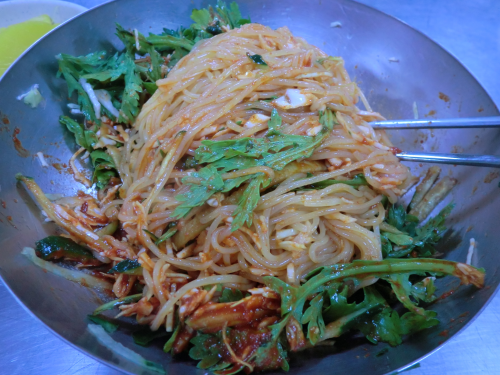 慶州市内繁華街の路地裏にあるミルミョン専門店