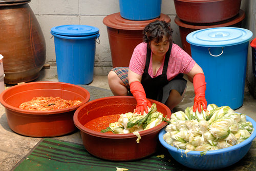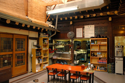「以北(イブッ)ソンマンドゥ」は、朝鮮戦争中に平壌(ピョンヤン)から渡ってきた店主が始めた以北(イブッ)の家庭料理店。オフィス街・市庁(シチョン)の路地に位置する店は、韓屋(ハノッ・韓国家屋)をそのままの形で残しており、ひと昔前の一般家庭のような居心地の良さです。さっぱり冷たいキムチの漬け汁のスープにご飯が入ったキムチマリバッは、店を有名にしたメニュー。ごま油とほのかな甘味が効いて辛さはあまり感じられません。その他、子どものこぶし大の皿餃子(マンドゥ)、緑豆チヂミなどこだわりの以北の味が並びます。