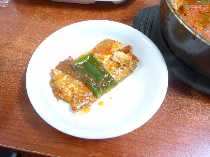 30℃の暑い日でしたが、お客さんが少ないからなのかノークーラーで汗だくになってしまいました。頼んだのは焼き魚、パンチャンのケランチムも美味しかったのですが、汗がだらだらなので早く食事を済ませて出たいと思うことが残念でした。次は太刀魚の煮付けをいただきたいと思います。