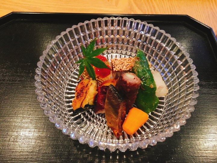 最初に出てきたお料理は、とても涼しげな器にのって来ました。