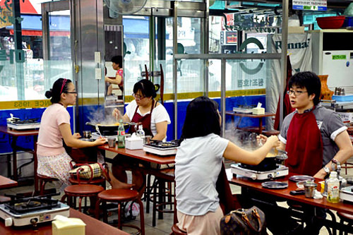 店内はトッポッキを煮るガスボンベのせいなのか、はたまた人の熱気なのか、