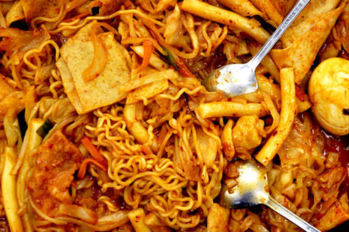 餅、ラーメン、チョルミョン、おでん、たまご、揚げ餃子など