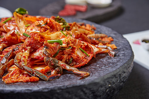ユッケ、カルビ、海老の天ぷら、エスカルゴ、アワビ粥、かぼちゃ粥、ホヤのビピンバ、