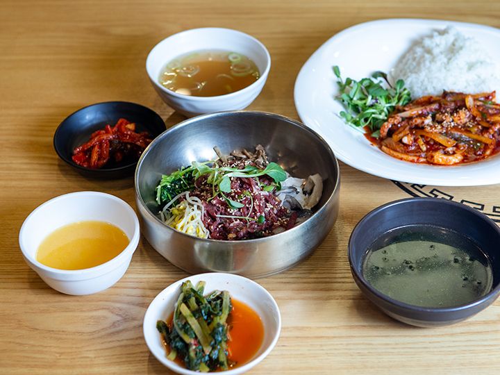 定食には、小皿のおかずが色々ついてきて、子どもと分けることができましたし、辛くないお惣菜もあるので、子ども連れの方にはよいでしょう。ロッテワールド内で