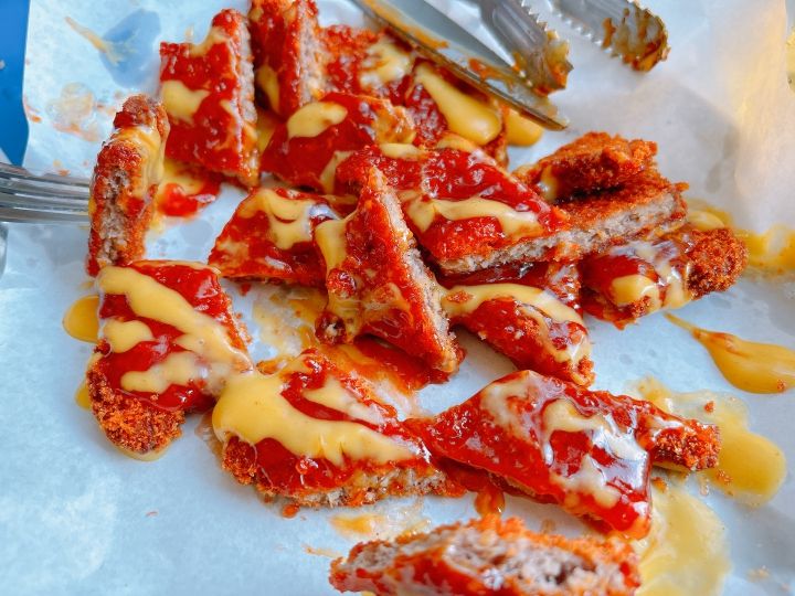 ハンチも焼き立て熱々をハサミで切ってマヨネーズとコチュジャンで食べたら本当にもう最高でした。