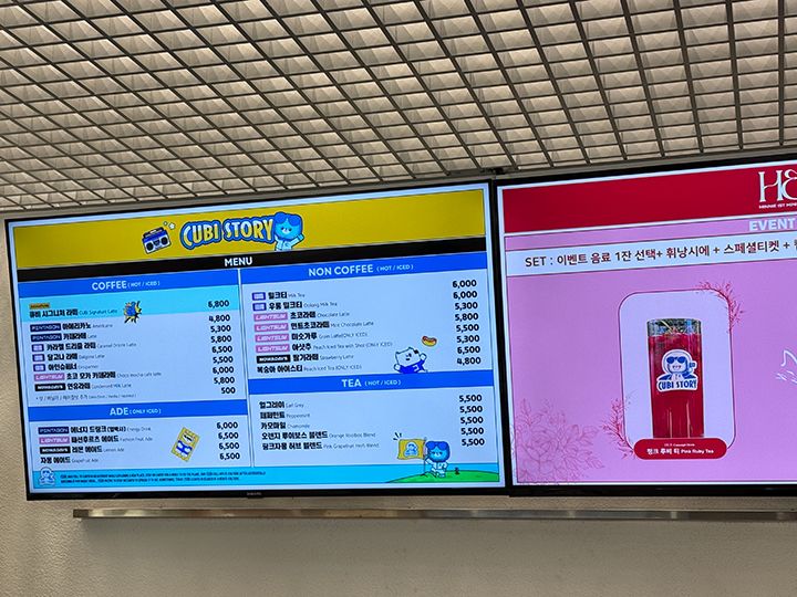 韓国の人気アイドル、PENTAGON(ペンタゴン)、(G)I-DLE、LIGHTSUM、NOWADAYSらが所属する「CUBE(キューブ)エンターテインメント」1階に入店している事務所カフェで、通称「CUBE CAFE(キューブカフェ)」と呼ばれています。定期的に店名が変わり、2024年からは「CUBI STORY(キュービー・ストーリー)」となりましたが、店内の大型スクリーンで所属アーティストの映像などが眺められる様子は変わりありません。場所は、ソウル地下鉄2号線「聖水(ソンス)駅」の1番出口近くにあり、大通り沿いにあるので行き方は簡単。カフェの上の階が事務所フロアになっています。推しのメンバーが登場する事務所イベントが不定期で開催され、イベント時は貸し切りのため一般利用できなくなります。