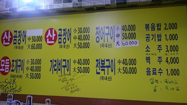 | 主なメニュー | コムジャンオ(ヌタウナギ)、ウナギ |