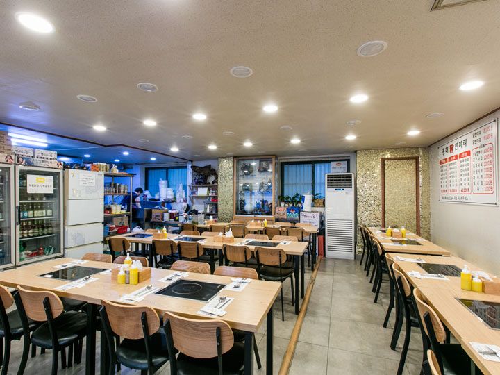 駅近で便利でした。当日帰国日だったので混む前にと思って、11時オープンでちょうどに着いて一組目でした。次も日本人でしたがそれ以降は地元の人がどんどん入店して30分ほどで席が埋まりました。今回の韓国旅で食べた食事の中でいちばん美味しかったです。社長さんがちょくちょくきて食べ方をレクチャーしてくれます。会計時に「おいしかったです」と伝えると優しい笑顔を見せてくれました。また行きたいお店です。