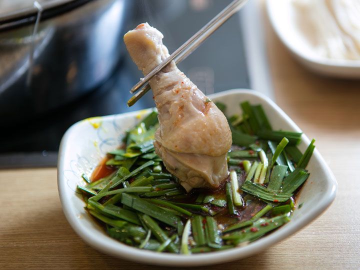 スープは淡白ですがダシが効いていて、鶏肉もそのまま食べても、タテギやニラと一緒に食べてもとても美味しかったです。