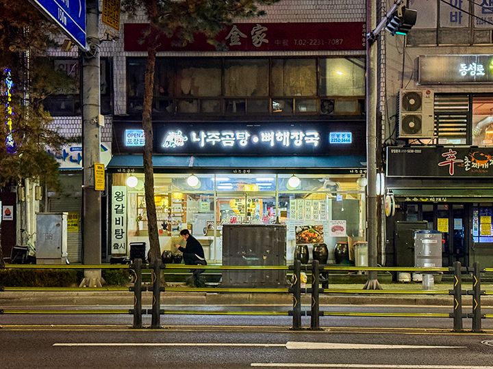 韓国の南西部にある羅州(ナジュ)市は、コムタン(牛の内臓煮込みスープ)の本場として知られる街です。その羅州式コムタンをはじめ、定番の韓国料理が味わえるのが、東大門(トンデムン)にあるこちらの食堂です。