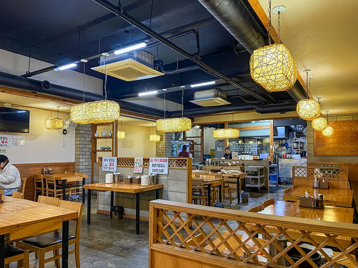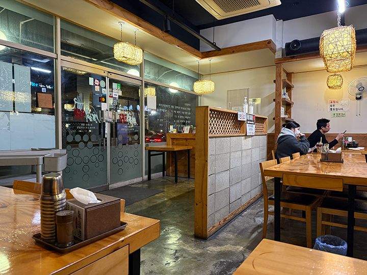 店舗は東大門エリアの東側、卸問屋通り近くの大通り沿いに位置し、24時間営業です。朝食から深夜まで時間帯を問わず利用できます。東大門でのナイトショッピング客や、すぐ近くにある大型劇場「忠武(チュンム)アートセンター」での観劇前後の食事にも便利です。