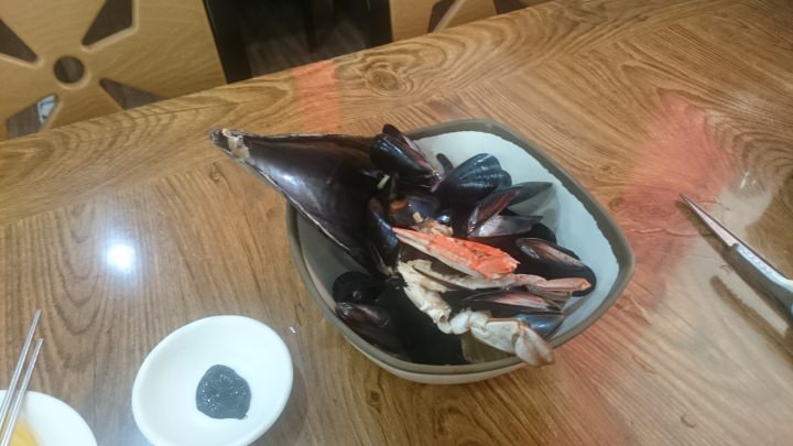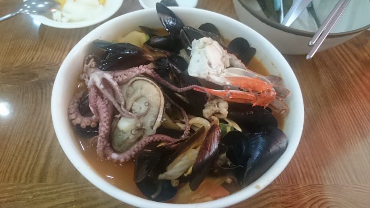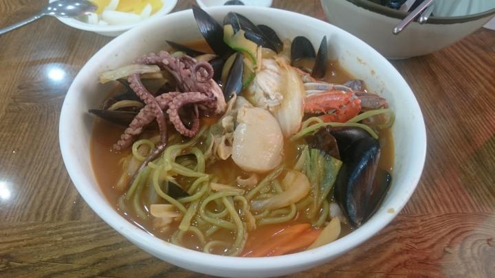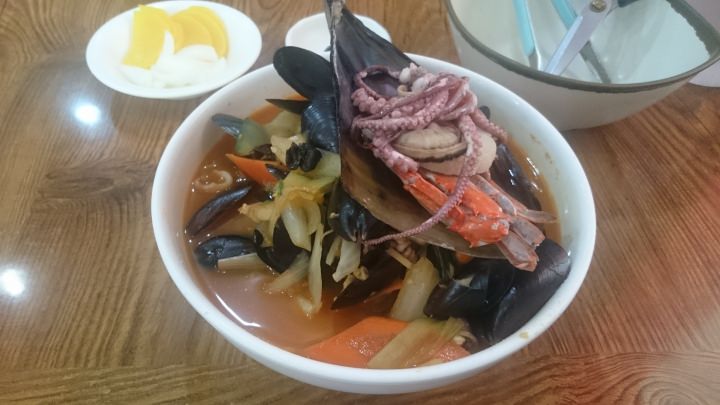 慶尚南道・背屯市外バスターミナル前。辛さ控えめ迫力満点の海鮮チャンポン
