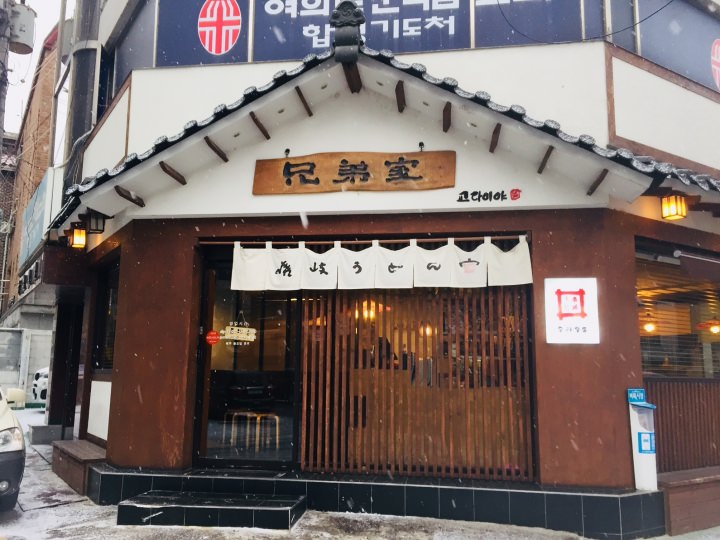 2・6号線ハプチョン駅の7番出口を出て、5分ほど歩くと「兄弟家」といううどん屋があります。