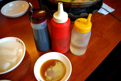 ただ日本人的に思っているような鍋のスープに下味はなく(色は唐辛子で赤いけれど)辛子醤油酢タレをつけなければ味はしない感じで(ブクブク煮詰まった後に残ったスープを味見したら流石に濃くなっていましたが)その時点でポックンパを頼みたい気持ちがなくなってしまい帰りました。