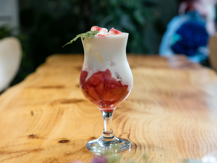 地下鉄2・4・5号線の東大門歴史文化公園(トンデムンヨッサムナコンウォン)駅近くにある「THE PIOLA(ザ ピオラ)」は、お花屋さんの中に併設されたフラワーカフェです。花を使ったエイドや季節限定ドリンクなどオリジナルメニューは、何を注文するか迷うほど種類豊豊富で、どれも見た目が可愛いとSNSで話題に!中でもイチゴたっぷりの「ストロベリーラテ」や「ストロベリーヨーグルト」、ジャムで絵が描かれた「ストロベリートースト」などのイチゴメニューは通年販売され、味も美味しいと評判です。フードメニュー注文で、ミニ花束もプレゼントしてくれます。東大門ショッピングの合間に癒しのひと時を過ごせるでしょう。