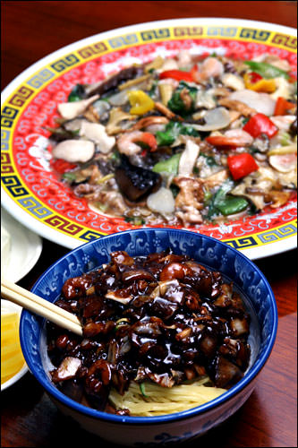 昔ながらの空気が漂う街・乙支路(ウルチロ)に、政治家や芸能人らも訪れるという1948年創業の中国料理店「安東荘(アンドンジャン)」があります。韓国中国料理の定番メニュー、チャジャンミョン(ジャージャー麺)が自慢です。麺は注文後すぐに専用機械で伸ばすためコシがあり、まろやかなチャジャンソースとよく絡まって美味。チョンガボッは海老やフカヒレ、ホタテ、アワビなどの海産物と、きのこやチンゲン菜、セロリなど野菜をふんだんに使った炒めもので自慢の一品です。変わらぬ味を求めてやってくる常連客も多くソウルでも評判の店です。