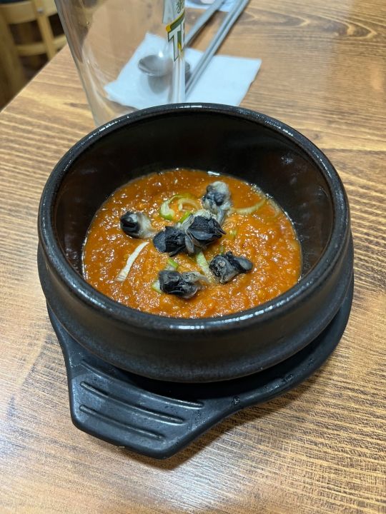ウロン(タニシ)サンジャンをつけ葉っぱで食べるとさらにウマイ。