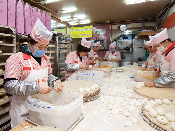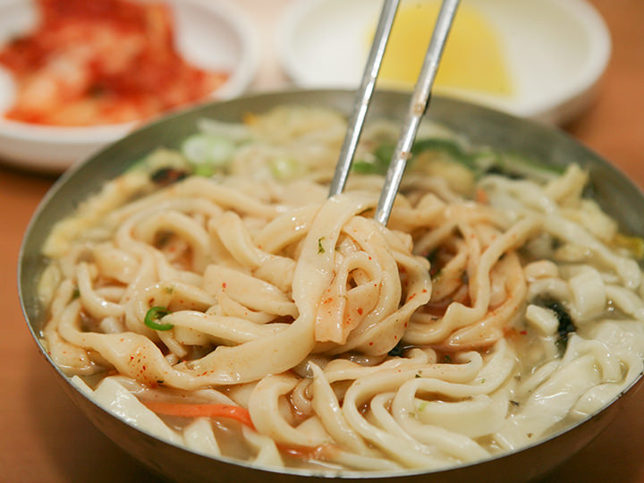 「カメコルイェンナルソンワンマンドゥ&ソンカルグクス(通称・カメコル)」は、1959年創業の手作りマンドゥ(肉まん)の専門店です。店舗は南大門市場(ナンデムンシジャン)にあり、食事時にはひっきりなしに客が訪れ店内は満員!人気メニューのマンドゥは、辛口(メウンマッ)と普通(スナンマッ)の2種類があり、ほんのり甘くモチモチした食感の皮が特徴。中には特製タレで味付けされた餡がぎっしり詰まっていて、食事はもちろん小腹が空いたときにもオススメ。店頭では出来立てほかほかのマンドゥのテイクアウト販売も行っているので、食べ歩きしたり、ホテルやゲストハウスに持ち帰っていただいてもよいでしょう。日本のTV番組で美容家IKKOがおすすめし、ますます話題になっています。